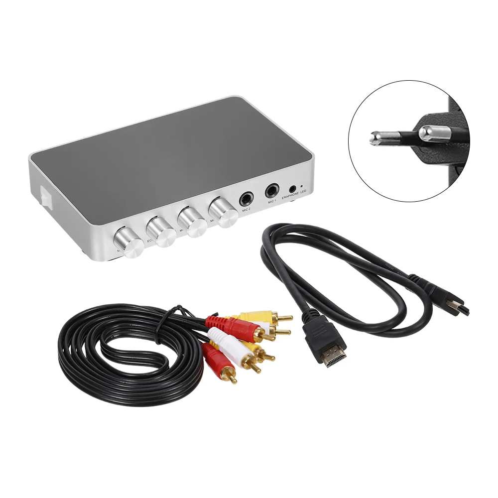 KM200 Караоке звуковой микшер портативный цифровой стерео аудио эхо система 4K/2K HDMI караоке усилитель с двойным микрофоном EU Plug
