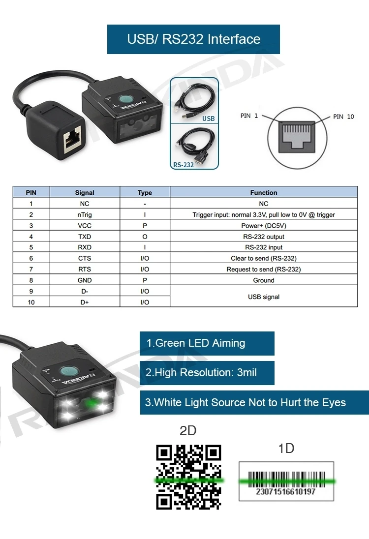 LV3000U способен считывать 1D, а также 2D штрих-коды большого объема на экране, покрытом защитной пленкой.