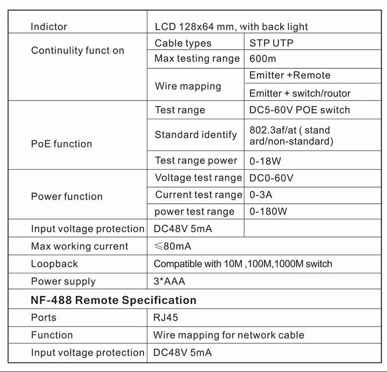 Noyafa NF-488/NF-8209/NF-8601S/NF-8601W /NF-308/NF-858C кабельный тестер с портом POE проверка проводов Cat5 Cat6 Lan измерительный прибор длина инструменты