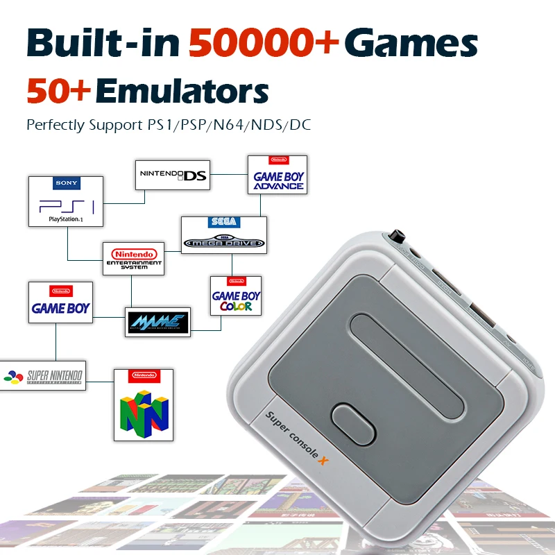 Предустановленная 50 +, защита от ультрафиолета, эмуляторы, встроенный 50000 + футболки с принтами на тему классических игр, подключи и играй. Идеально поддерживает PSP/PS1/DC/NDS/N64 и т. Д., снова посетите классические ретро-игры и верните вас в ретро-игры era.