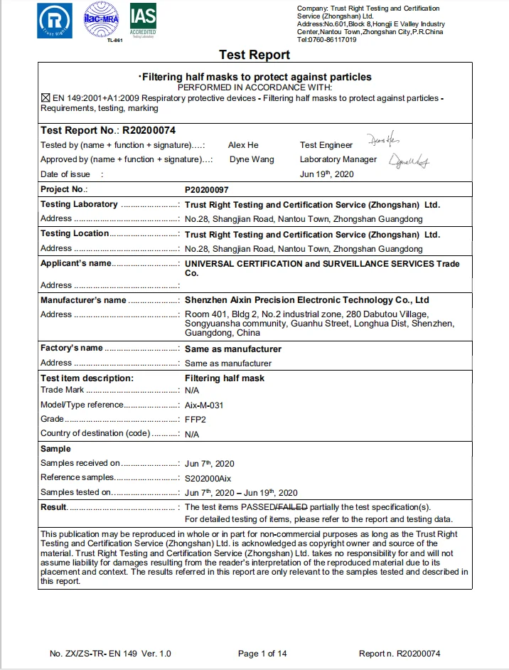 Уровень защиты: FFP2