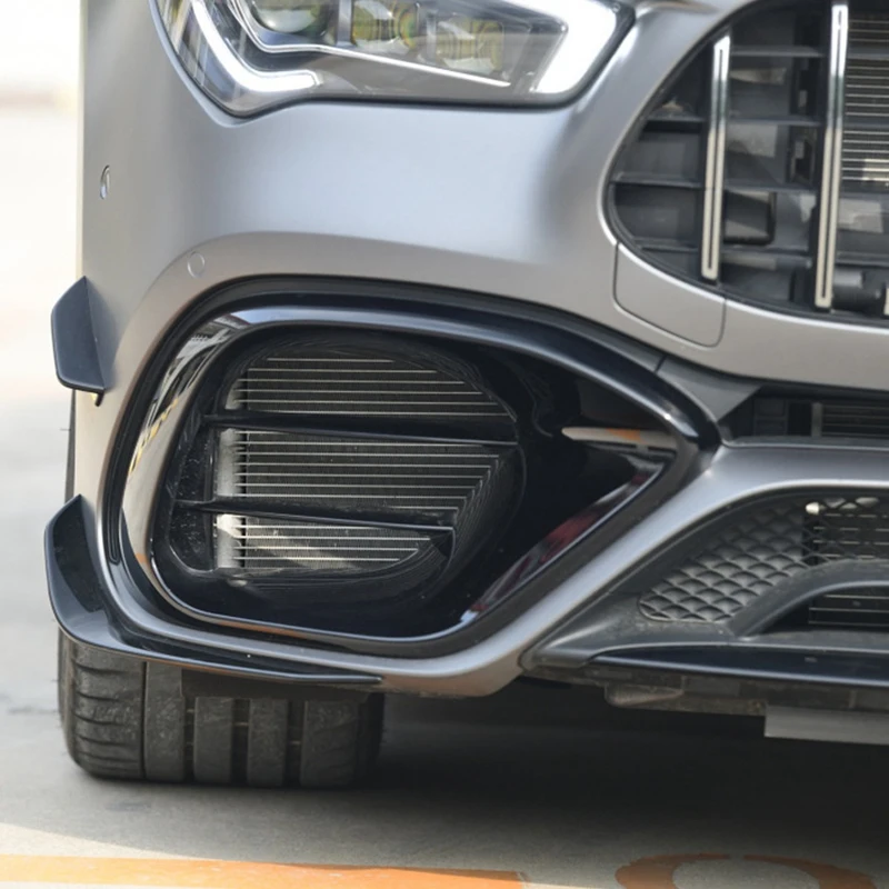 Передний бампер спойлер для Mercedes Benz CLA45 AMG C118 2020 2021 глянцевый черный бампер Спойлеры Противотуманные фары декоративная крышка