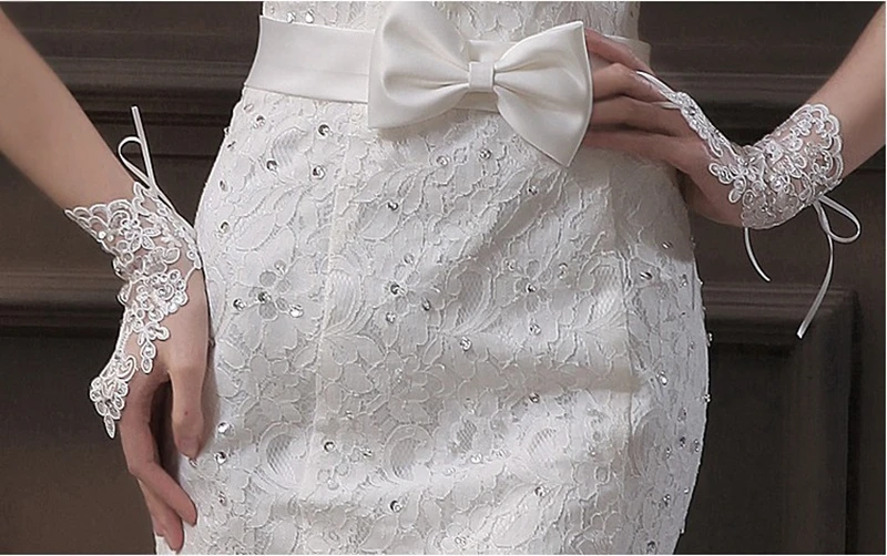 Новинка, свадебные перчатки цвета слоновой кости с кружевной аппликацией из бисера, дешевые кружевные перчатки, сексуальные свадебные аксессуары, свадебные перчатки Novia