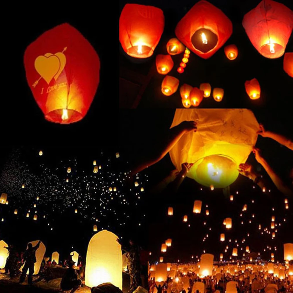 5 шт., китайские фонарики желаний, экологически чистые биоразлагаемые бумажные небесные фонари, лампы для свечей, уличная Праздничная вечеринка