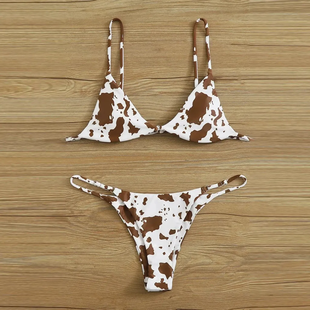 Женский комплект бикини с цветочным принтом, пуш-ап, купальник, пляжная одежда, купальный костюм с подкладкой