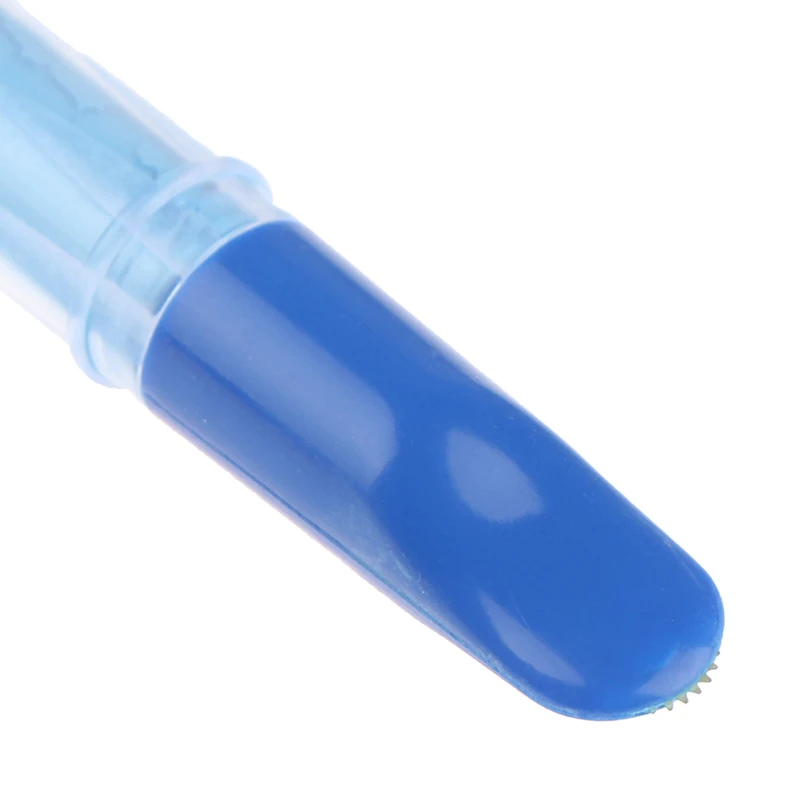 Мел помещается в большом конце, а узкий конец имеет металлический валик, который рисует Мел на ткани, пока вы его закатываете
