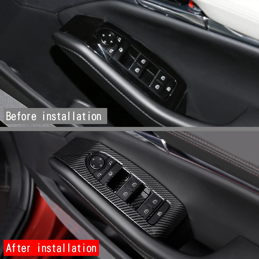 Год модели: Mazda CX-30 (2019-2020-2021) / AXELA(2020) Место установки: переключатель стеклоподъемника, комплект из 2 предметов (для правильного вождения) Функция: Защита от царапин, защита от вытирания, красивая Материал: Изготовлен из высококачественного АБС-материала, эффект текстуры из углеродного волокна, износостойкий и устойчивый к царапинам Эффект: продукт сделан в соответствии с оригинальным размером автомобиля 1:1, версия очень подходит, и не повлияет на использование оригинального автомобиля. Он наклеен на двухсторонний клей для конкретных автомобилей. Перед установкой оригинальный автомобиль не имеет защиты и не красив. После установки, Защитите оригинальный автомобиль, устойчивый к царапинам и износостойкий, чистая текстура углеродного волокна, выглядит очень красиво