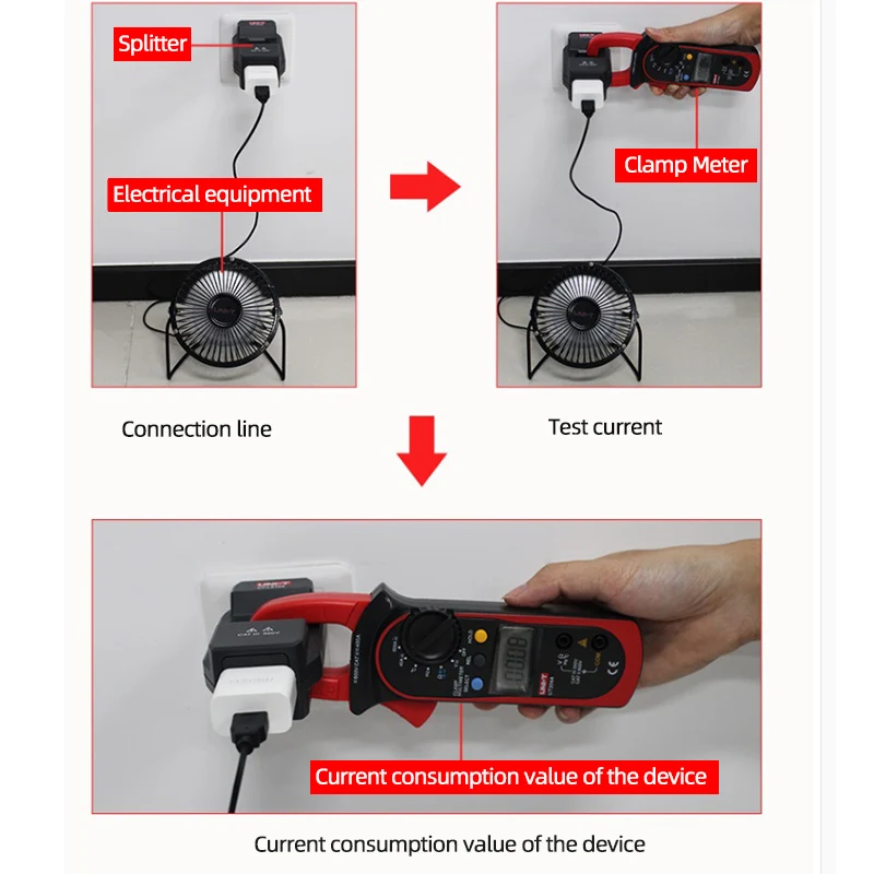 UT-LS10A совместим с большинством зажимных метров. Он отделяет живые и нейтральные провода с различными проводами. Отверстие для зажимного измерителя предназначено для обеспечения того, чтобы хомутовый измеритель можно было использовать, не разрушая шнур питания потребителя. Ток электрического оборудования.