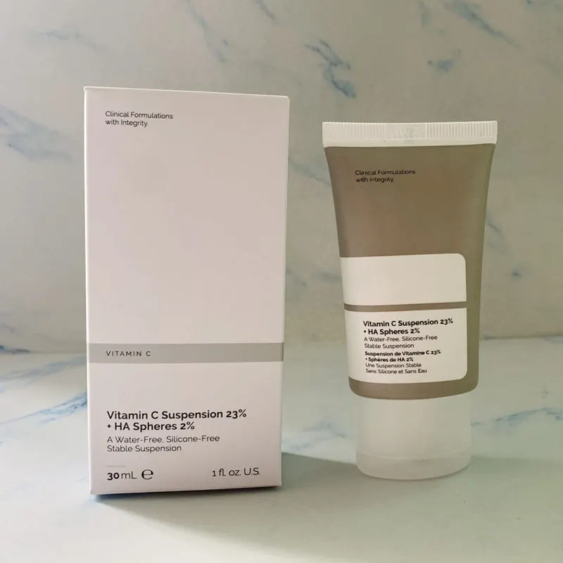 (Бесводная суспензия, формат тюбика) Данный формат представляет собой суспензию из очень мелкого порошка L-аскорбиновой кислоты и, как таковой, обеспечивает наиболее прямое воздействие экстремально высоких концентраций витамина С топично. При таком формате есть 2 важные вещи, которые нужно рассмотреть: 1) ожидается очень сильное покалывание, но не вызывающее раздражения ощущение в течение первых 1-2 недель использования до повышения переносимости кожи к такому высокому воздействию; 2) воздействие порошка на кожу не позволяет формуле почувствовать себя сывороткой, Лосьон или крем и каждое нанесение требует несколько секунд, чтобы почувствовать себя впитываемой кожей. При желании эту формулу можно разбавить в кремовой основе за каждое применение, чтобы позволить коже со временем выстроить толерантность. Эта формула ощущается смелостью на коже в течение нескольких секунд. Если такое ощущение не желательно, мы бы предложили Витамин С суспензия 30% в силиконе.