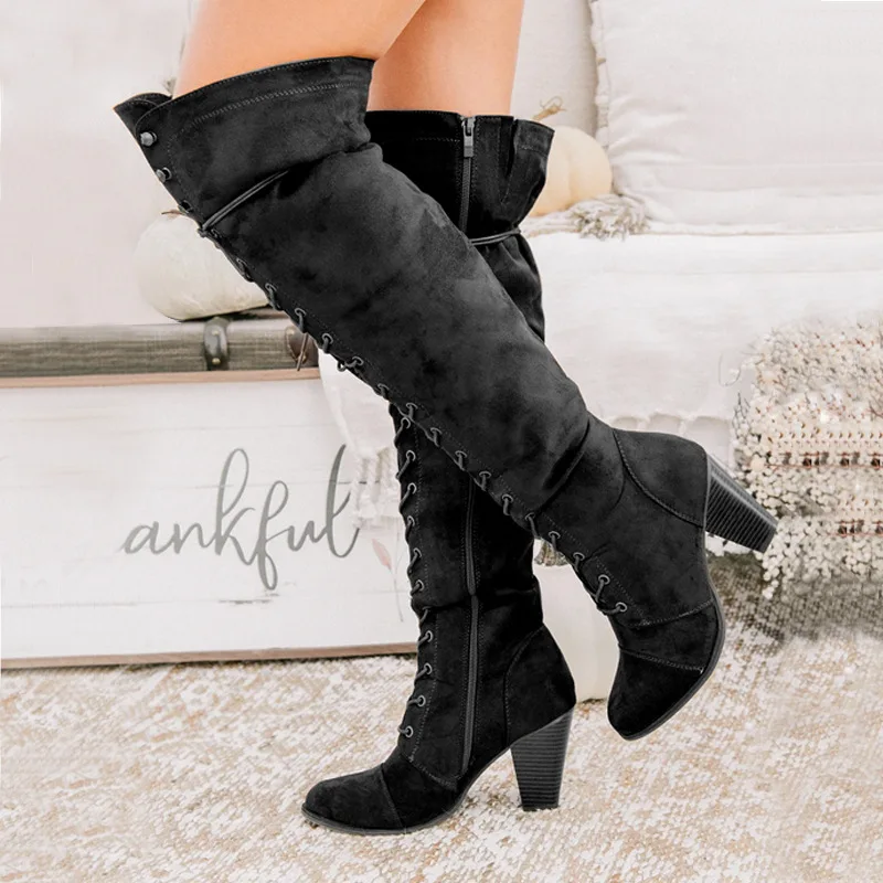 Perixir/женские ботфорты выше колена замшевые высокие сапоги женская обувь с острым носком и боковой молнией, украшенная металлическими украшениями спереди и кружевом Новинка 2021 года