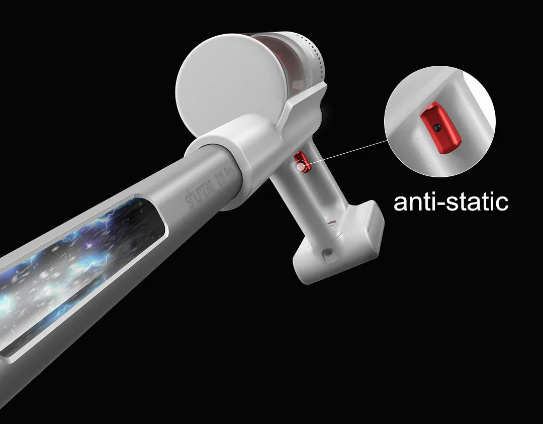 Когда пыль поступает в пылесос на высокой скорости, она генерирует статическое электричество путем трения с внутренней стенкой пылесоса, роликовой щетки и т. д. Обычно материал пылесоса сам по себе имеет определенную изоляцию, поэтому статическое электричество не может быть высвобождено и грязь наклеиваются на внутреннюю стену. В то время как Shunzao разработала встроенное электростатическое направляющее устройство для этой цели, которое может эффективно экспортировать статическое электричество для чистой внутренней стены.