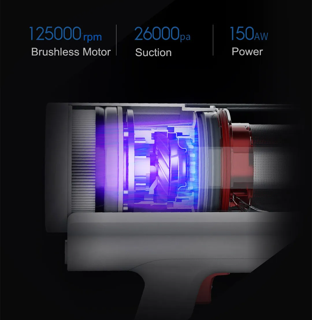 125000 об/мин цифровой двигатель | 26000 ПА всасывание | 150AW мощность всасывания | 60 минут время работы