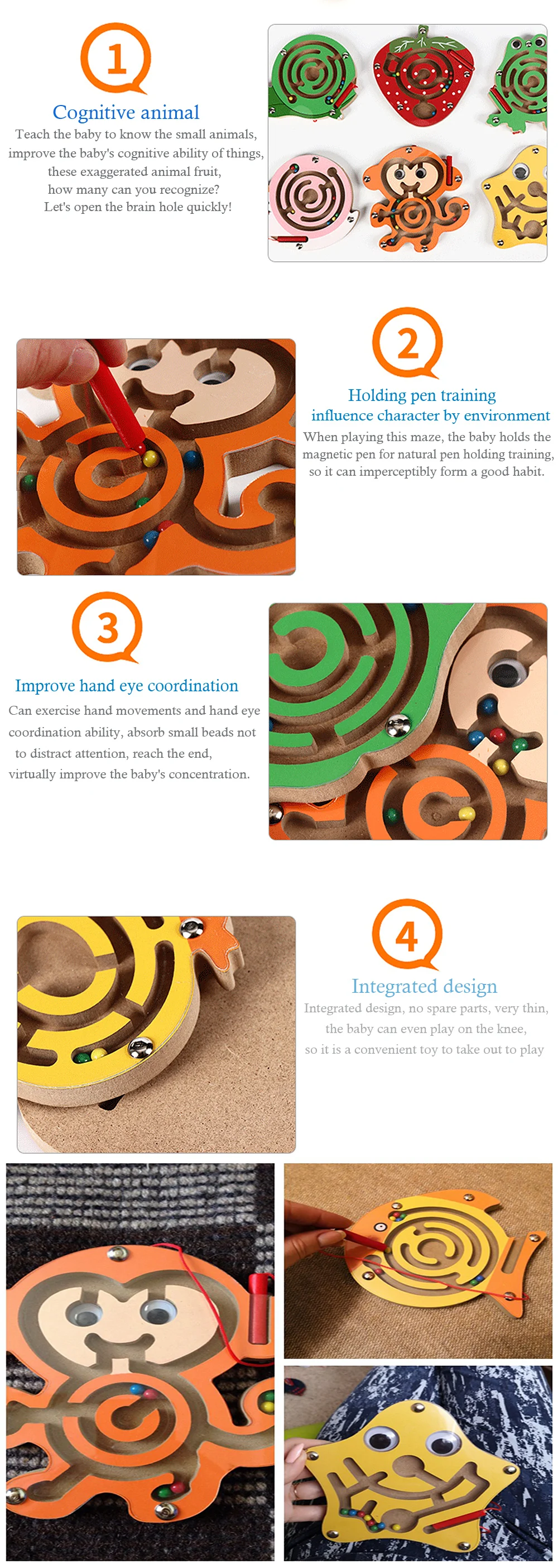 Product Specifications: Material: Wood Package Listing: 1 x Magnetic Pen Maze Toy Main Feature: Made from good quality wood with compact structure, durable and safe for children to play with. Let your child drive the beads across the maze using the magnetic pen. Perfect size especially fits for little hands, smooth surface with no burr protect kid`s hands from scratching. Develop kid`s ability of balance control, improve kid`s intellect, teach them to build up patience and explore for final victory. Well improve children`s hand-eye coordination and enhance the understanding of three-dimensional space. Small volume and light weight, easy to carry, it is also a good stress releasing tool for you.