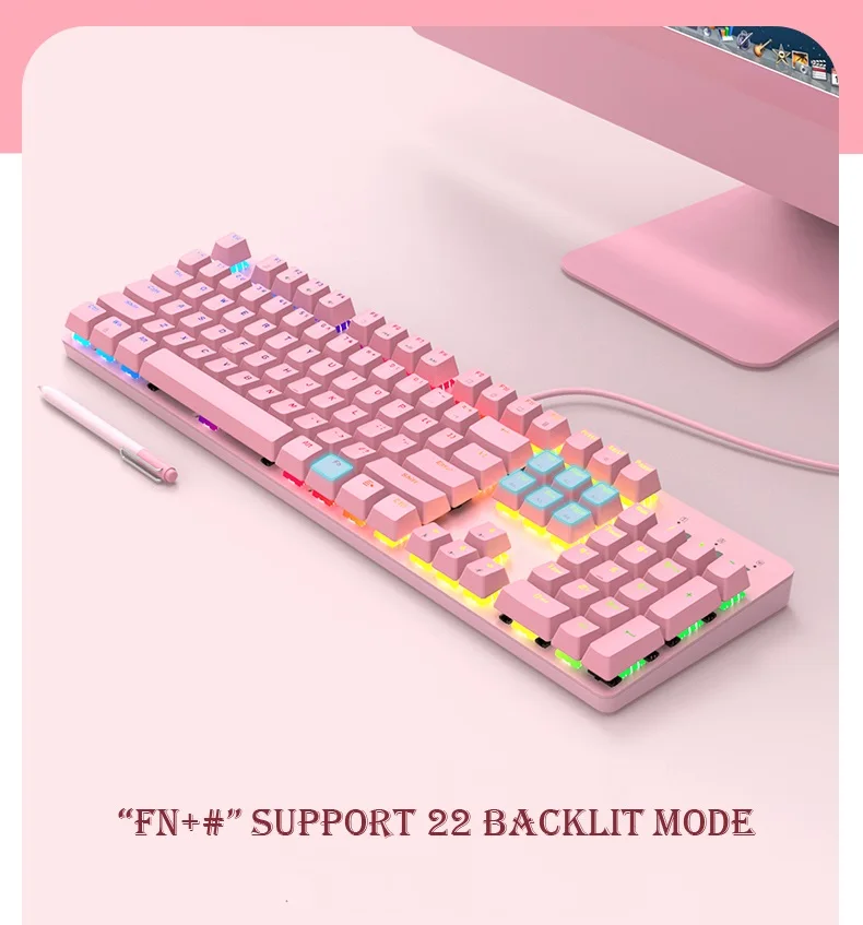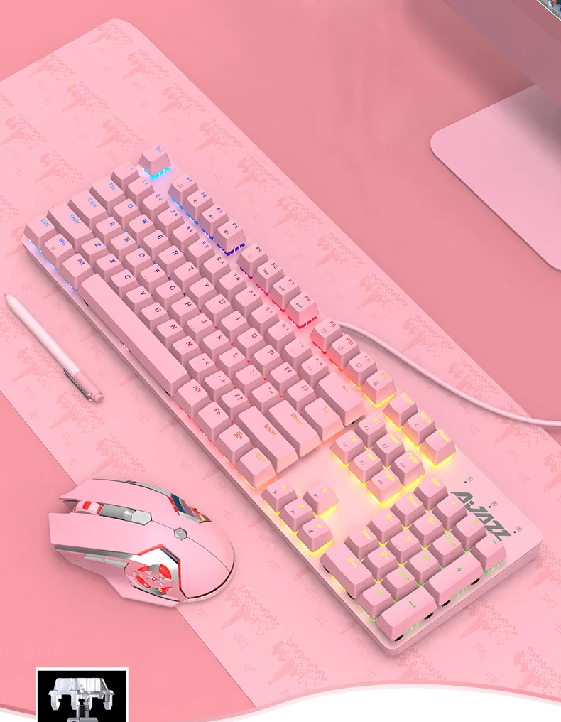 Розовая Клавиатура Наушники в форме мыши наборы для ПК 104 Keycaps механический Keybaord с 3200DPI Макросъемка мышь и Stero звук наушники комбо