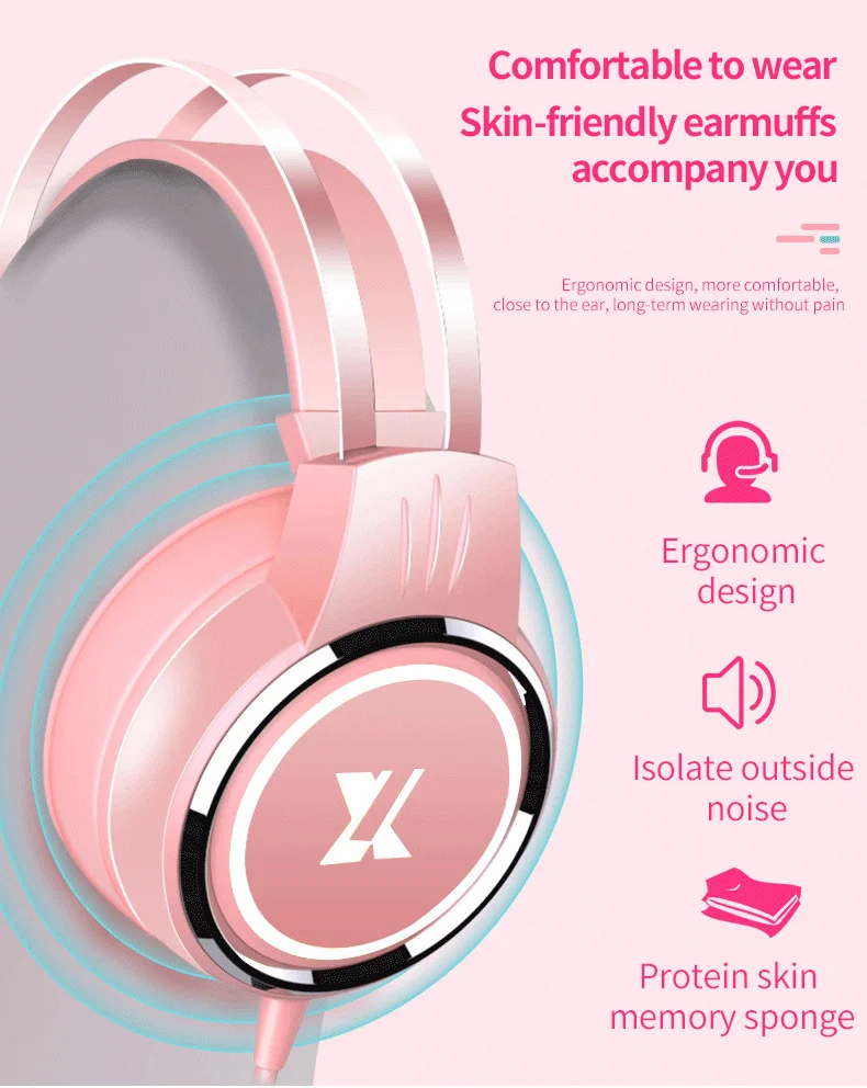 Модель: розовые наушники Тип: наушники Stero Vision Тип наушников: наушники Способ ношения: крепление на голову Источник выхода наушников: компьютер ПК Диаметр штекера: 3,5 мм * 2 Тип разъема: USB Беспроводная гарнитура: Проводная гарнитура С микрофоном или без: Да Принцип звучания: подвижная катушка Частотный диапазон отклика: 20-20000 (Гц) Сопротивление: 32 (Ω) Чувствительность: 113 (дБ) Длина провода: 2,5 (м) Диаметр динамика: 50 (Φмм) Затычки для ушей/наушники Материал: протеиновый кортекс пены памяти Используйте компьютерную гарнитуру, игровую аудио и видео гарнитуру Вес 380 (г)