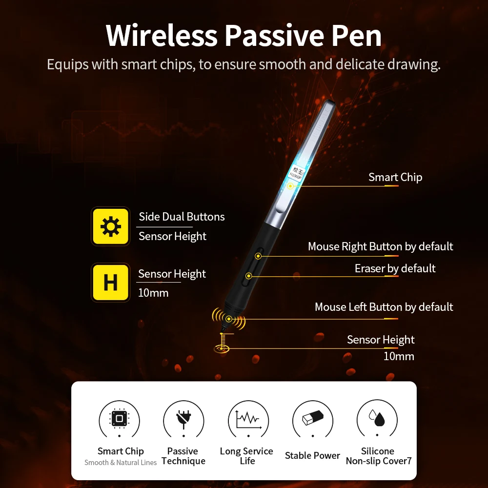 Поставляется с пассивной ручкой без батареи, которая оснащена умными чипами, удобно держать, чтобы обеспечить гладкий и тонкий рисунок, и позволяет автоматически отслеживать траекторию рисования, чтобы сделать линии более гладкими и естественными, функция автоматической коррекции линии, которая позволяет исправить ручку наклона для большего удобства.