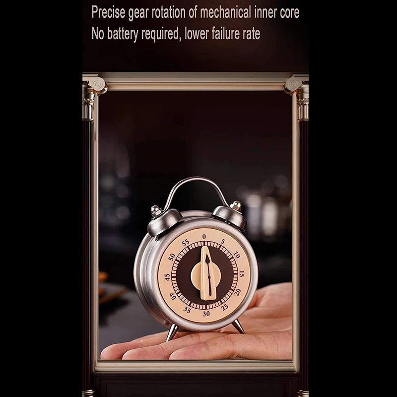 Дизайн: Таймер времени милый. Забавный, ретро-дизайн. Механическое время, не требуется боевых действий. Он может избежать повреждения батареи тела, безопасного и здорового, точного времени. Его мастерство очень изысканное, обработка поверхности таймером времени очень гладкая, без каких-либо недостатков, настоящие таймеры красивее, чем на картинке. Таймер имеет максимальное время 60 минут и громкий объем 76 децибелов.