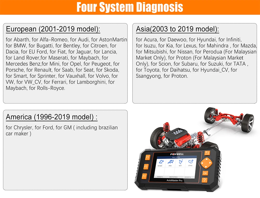 Foxwell NT634 OBD2 сканер четыре системы покрытия транспортного средства: