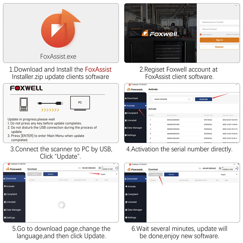 1. Перейдите на официальный веб-сайт Foxwell: Выберите свой продукт, нажмите на страницу загрузки, а затем Загрузите программное обеспечение FoxAssist Installer.zip update для клиентов.