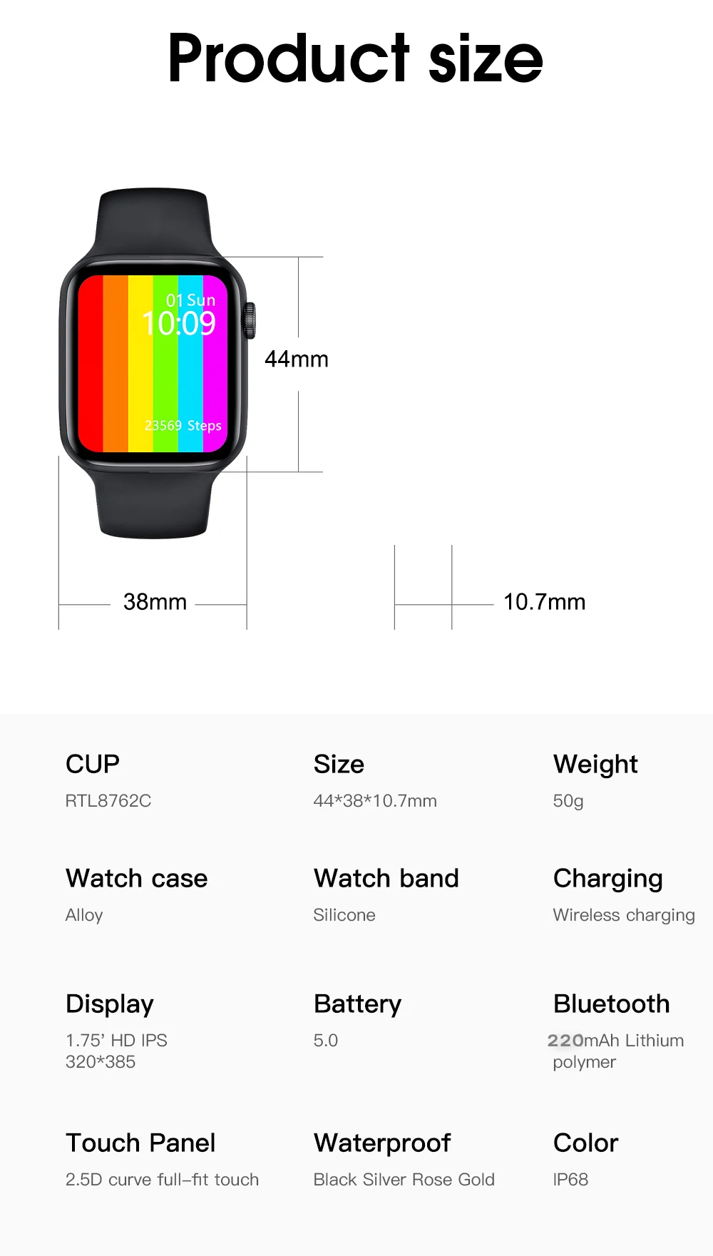 IP68 водонепроницаемый, температура тела, частота сердечных сокращений, электрокардиограмма, кровяное давление, шагомер, фрукты 5-го поколения Размер, сменный 44 мм ремешок, умное меню в стиле сот, девять квадратных ячеек меню