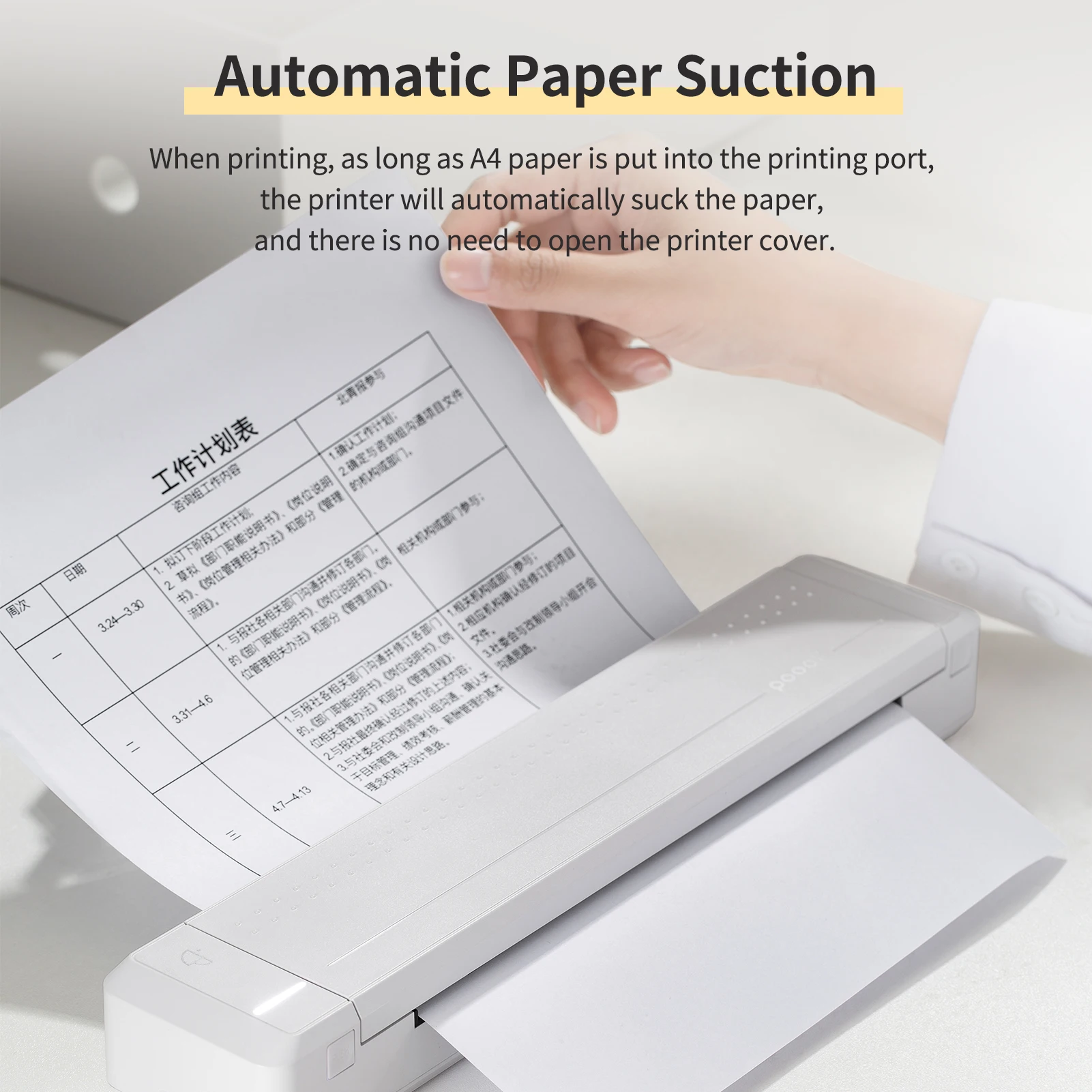 Портативный принтер A4:Маленький и легкий, легко носить с собой, печатать в любое время и в любом месте. Разрешение 300 точек/дюйм, передовая технология термопередачи, четкое письмо и хороший эффект печати.