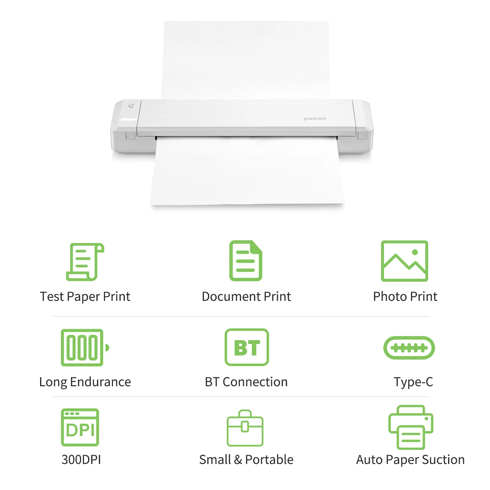 Широкое применение:Мобильный принтер A4, идеально подходит для печати pdf-файлов, тестовой бумаги, веб-страницы, контракта, фото, изображений и т. д., станет отличным помощником для учебы и офисной работы.
