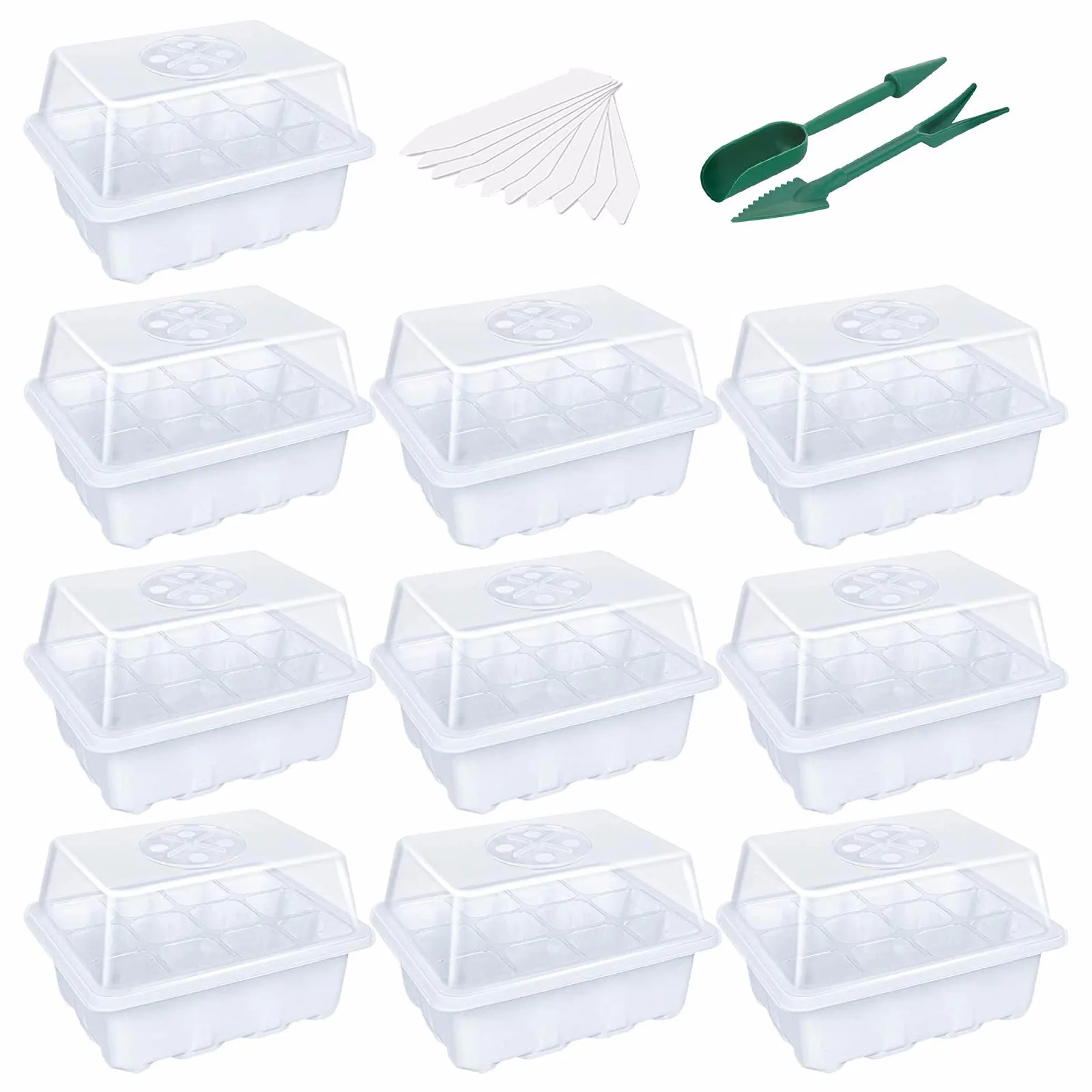 10-упаковка семян лотки для стартера поднос для рассады (12 ячеек в лотке) Регулируемая влажность Стартовый набор растений с куполом и базой теплицы для выращивания семян Запуск