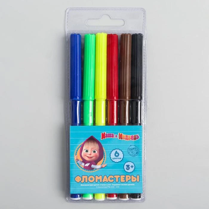 Фломастеры 6 цветов «Маша и Медведь», в пенале, вентилируемый колпачок, длина линии письма более 400 м, европодвес
