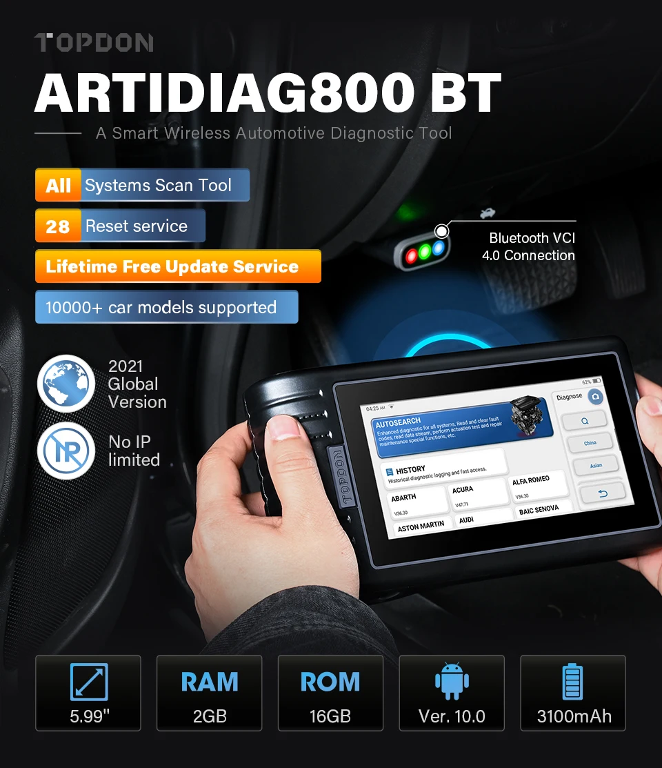 TOPDON ArtiDiag800 BT All System + 28 Reset Service s + пожизненное бесплатное обновление + 2 года гарантии на любую проблему качества