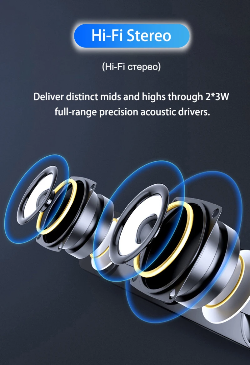 Bluetooth-колонки обеспечивают различные средние и высокие частоты через 2*3 Вт полный диапазон точности акустических драйверов. Богатый бас от наших собственных встроенных пассивных басовых радиаторов дизайна. 4 единицы звука, рожденные в комнате-заполнение стереозвука, принесло чудесное удовольствие!