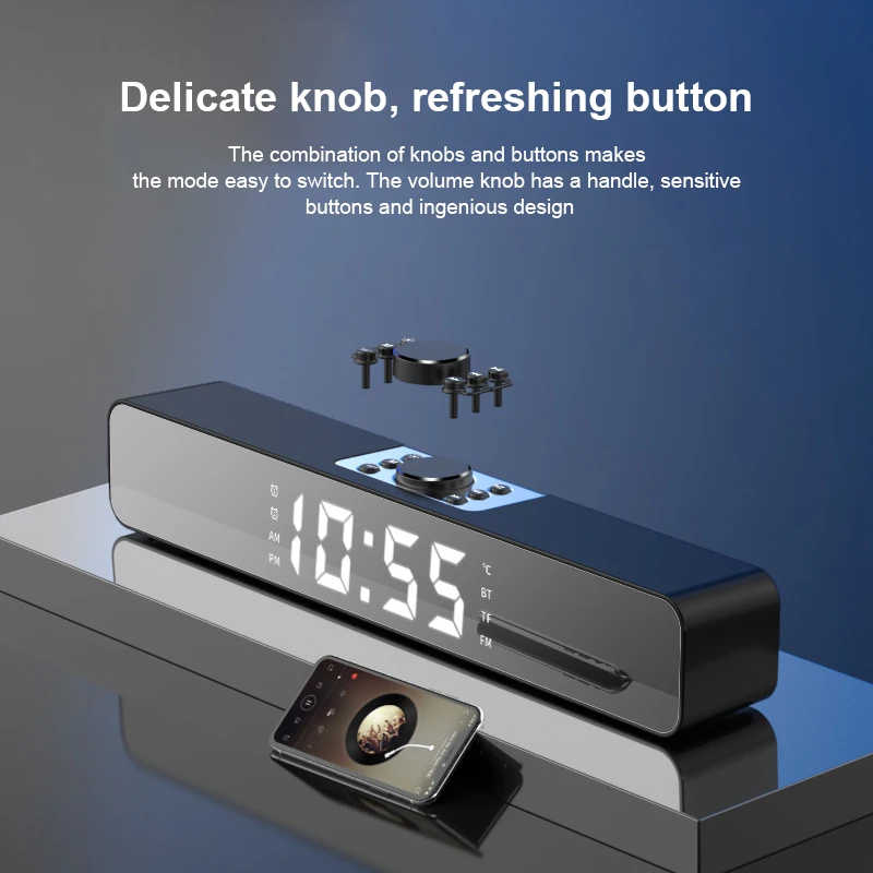 Радио-будильник Bluetooth время динамика может быть установлено, чтобы показать в течение 12 часов или 24 часов. Просто нажмите и удерживайте кнопку «-» радио будильника для отображения экрана цифрового будильника.