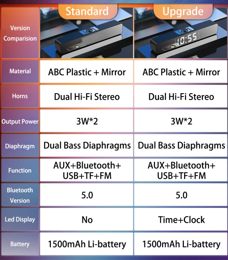 Поддержка: Bluetoth, tf-карта, вход переменного тока, 3,5 мм аудио вход, FM, rasio, двойным сигналом показывающие внутреннюю