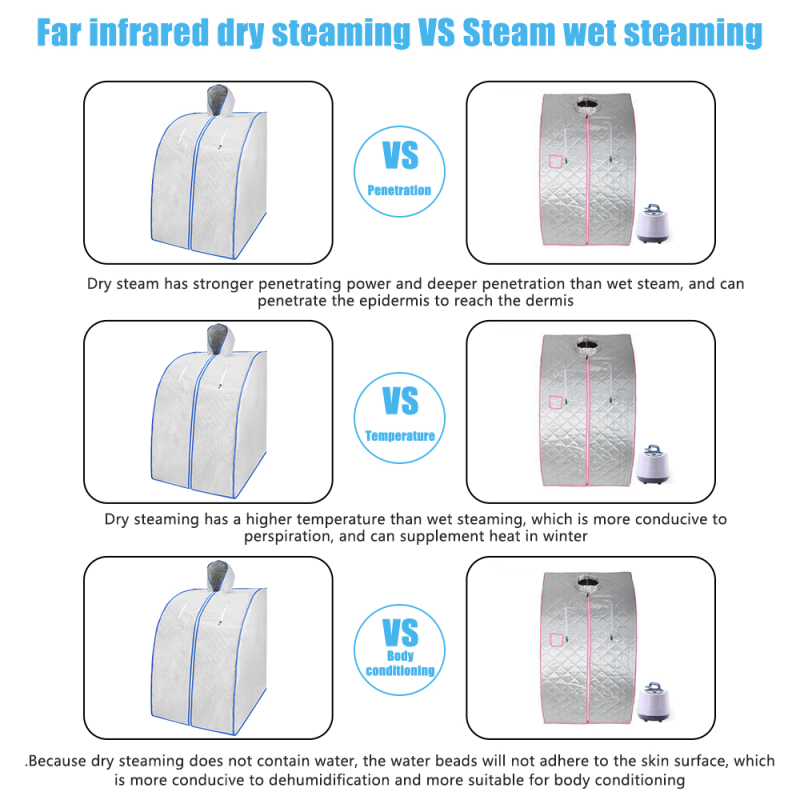 2. Сухой паром имеет более высокую температуру, чем влажный паром, который более способствует поту, и может дополнять тепло зимой