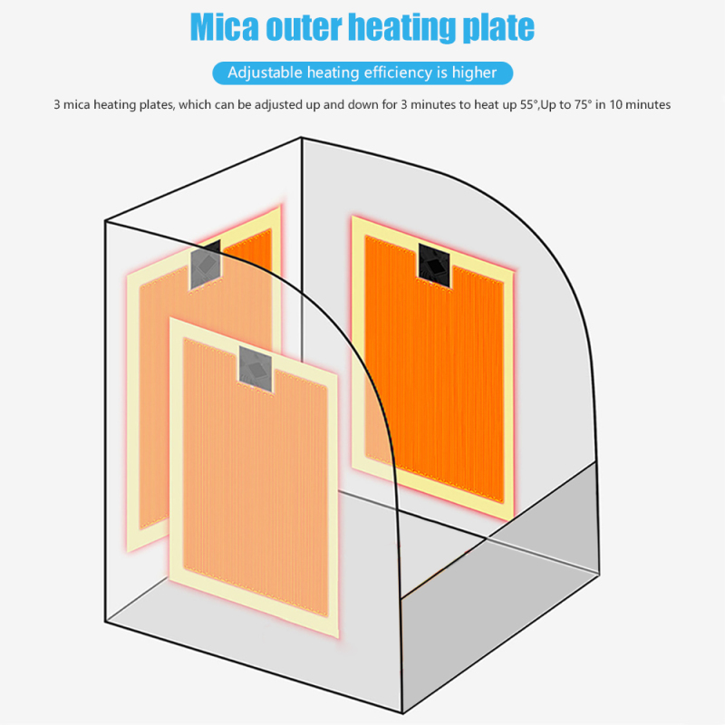 Внешняя нагревательная пластина слюды: регулируемая эффективность нагрева выше; Три нагревательные пластины слюды можно регулировать вверх и вниз; Она может нагреваться до 55 ° в течение 3 минут и 75 ° в течение 10 минут