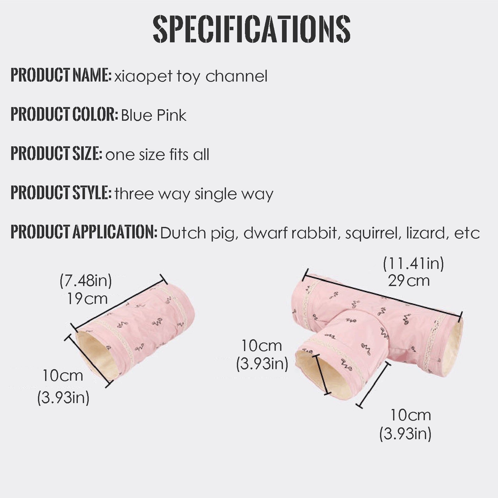 Идеально подходит для морских свинок, хомяков Цвет: синий, розовый Разделены на два стиля одного канала и три канала, каждый с двумя цветами Вашим питомцам понравится играть в этом уютном туннеле, бегая вперед и назад. Исследуя, имея свое собственное скрытое место и тень от солнца. Домашние животные будут часами бегать и выходить без вреда для мягкого туннеля. Ручная или машинная стирка, можно сложить и хранить, экономя пространство. Рекомендуется покупать более удобную замену Применение продукта: морская свинка, карликовый кролик, белка, ящерица и т. д.Посылка включает в себя: