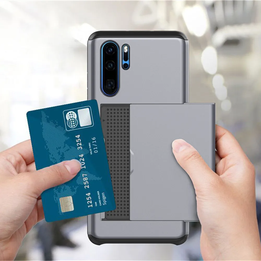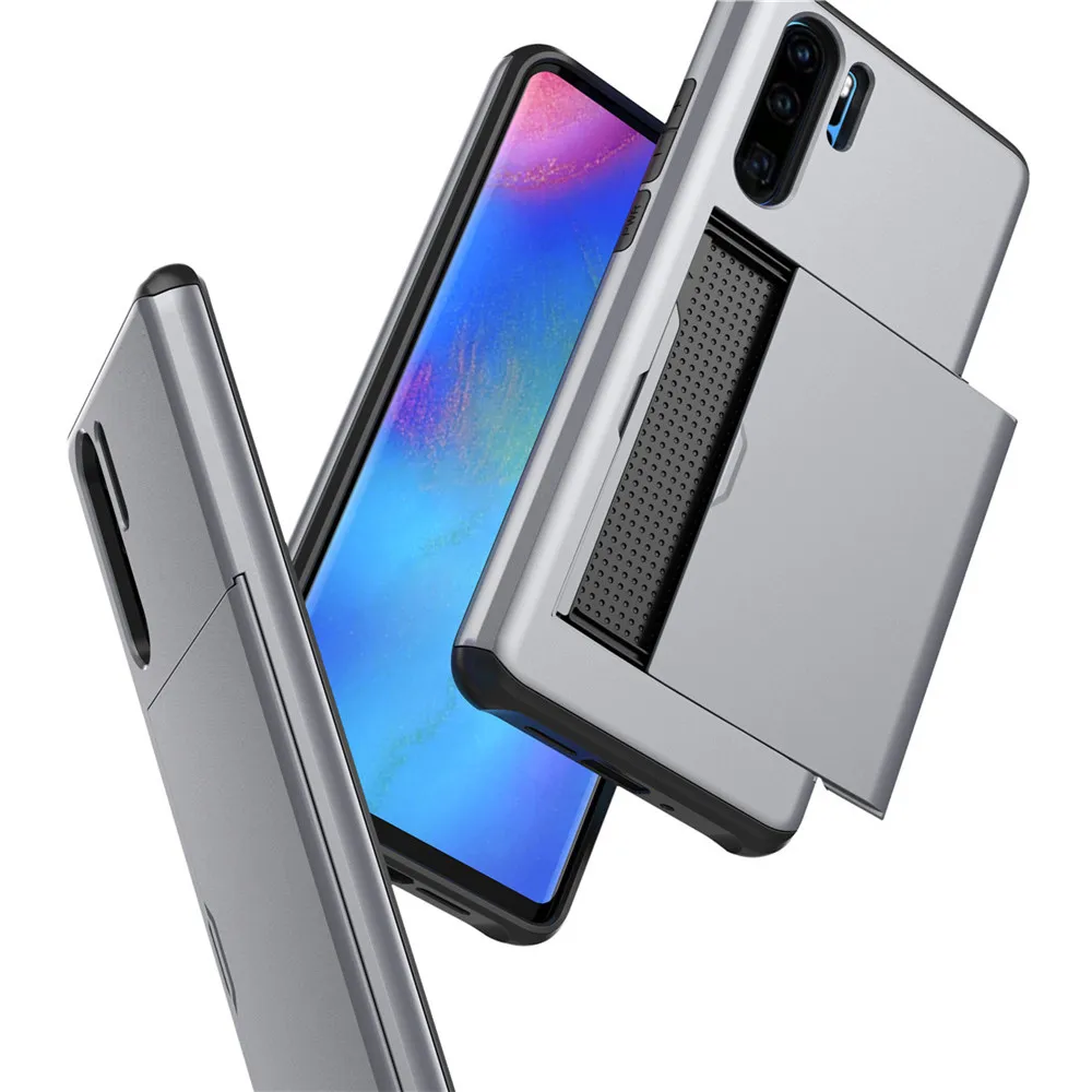 Armor Slide Card Slots Holder Cover On The For Huawei P30 Pro P 30 Case Capa Coque Funda