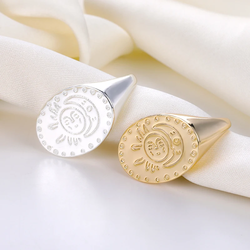 Женское кольцо в стиле ретро с исламом и луной, минималистичное круглое кольцо с цветком золотого и серебряного цвета, геометрические украшения, модные подарки для женщин и девочек