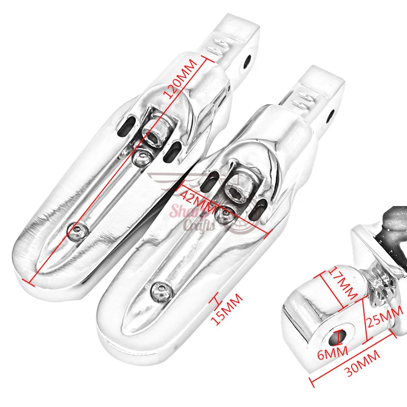 Описание:Состояние: 100% новый брендЦвет:ХромРазмер:Как показано на картинкеКоличество:1 комплект (слева и справа)Материал:Высококачественная заготовка из алюминия и резины Приспособление: Для 1999-2009 Yamaha V-Star 1100 (задний)