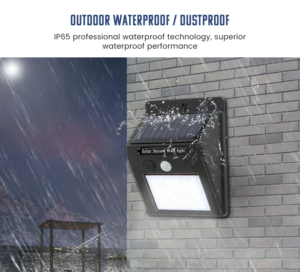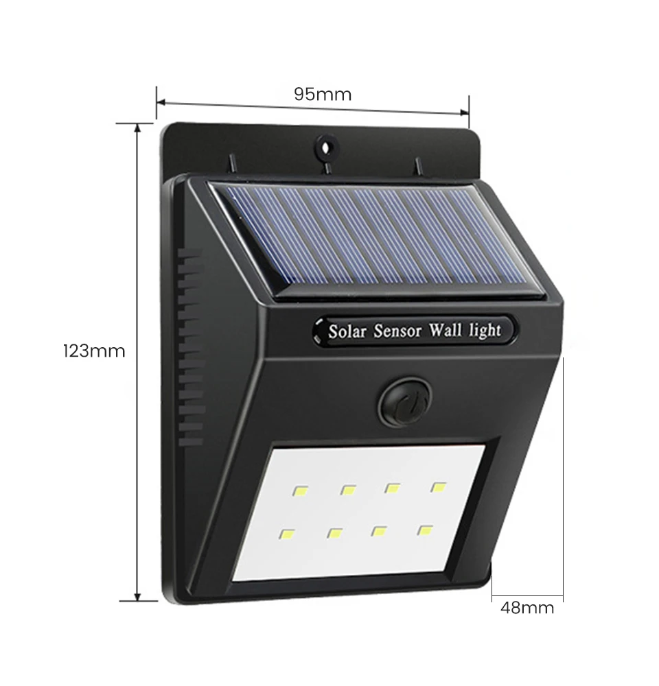 Введение режима: В условиях низкий светильник (ночью)1. Автоматическая активация в условиях низкого светильник, не требуется операция (активация переключателя требуется для первого использования) При ярком освещении (дневное)2. Яркость окружающей среды выше, чем 5 люкс, и светильник отключается, солнечные панели также будут продолжать заряжать Люди движущиеся огни в области обнаружения3. В тех случаях, когда человек входит в datection, при помощи инфракрасного излучения, светильник человеческого тела обнаружении, и лампа автоматически светильник или похода по магазинам. Люди покидают отряд4. После того, как человек покинет зону обнаружения в течение определенного периода времени, светильник автоматически погаснет. Преимущество:1: супер водонепроницаемый, даже если он находится под дождем снаружи, это не повлияет на все.