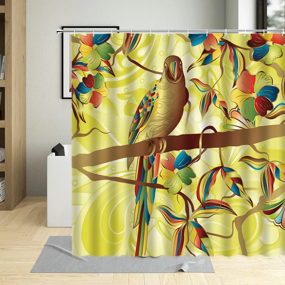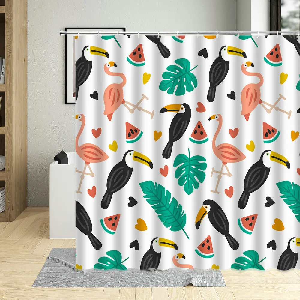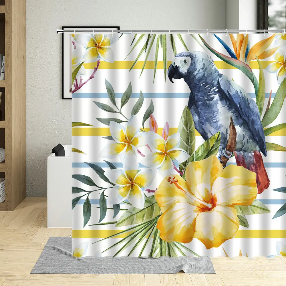 Попугаи Тукан экзотические тропические цветы Пальмовые Листья занавеска для душа Джунгли птица мультфильмы ванная комната Декор ткань занавеска s с крючками