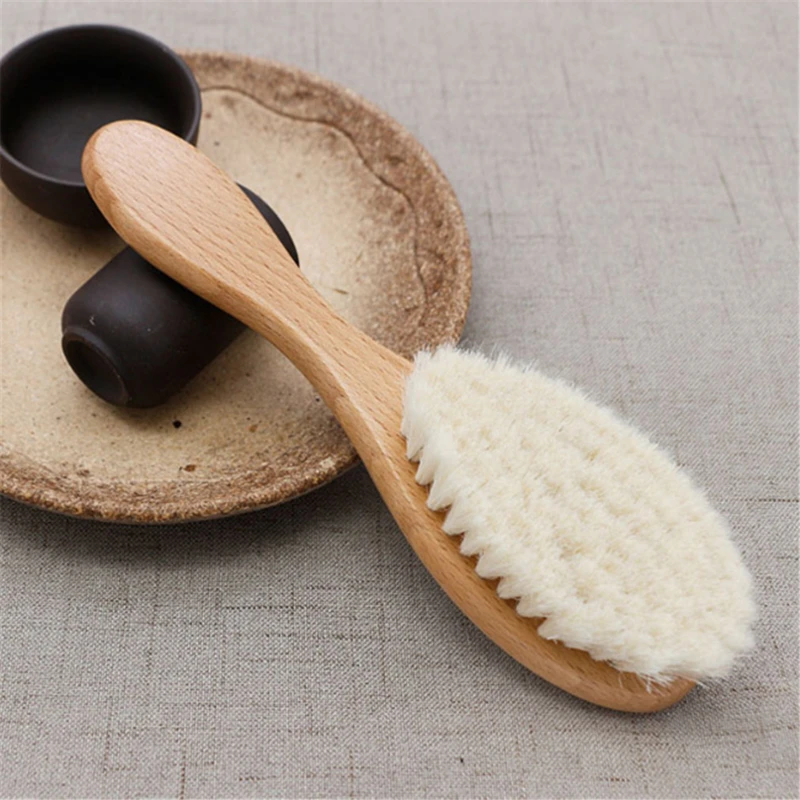Natural Soft Goat Bristle Hair Sweeping Brush Men Beard Comb Oval Wood Handle Barber Dust Brush For Broken Hair Cleaning Tool