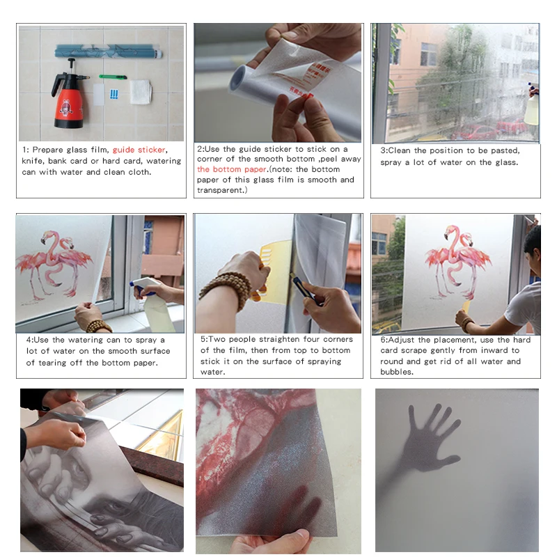 Нет клея только для гладкого стекла Пожалуйста, оставьте мне сообщение о стиле, который вам не нужен, или сообщите мне, какой стиль вам нужен. Или я отправлю его случайным образом! 1. Тип продукта: стеклянная оконная пленка 2. Материал: экологически чистый ПВХ, водонепроницаемый, устойчивый 3. Цвет: фактический цвет легче, чем на изображении. 4. Срок службы: От 8 до 10 лет 5. Техника: цифровая печать 6. Подходит: окна, раздвижные двери, гладкая поверхность. 7. Особенности: статическое прилипание без клея и многоразовое использование * Обычный размер: 30x60 см 30x90 см 30x120 см 40x60 см 40x90 см 40x120 см 45x60 см 45x90 см 45x120 см 50x90 см 50x120 см 60x90 см 60x120см * Индивидуальный размер: 1. Размер: мы можем сделать любой размер, который вам нужен, пожалуйста, свяжитесь с нами по сообщению или услуге онлайн перед заказом. 2. Минимальный размер заказа: 0,2 квадратных метров 3. Цена: USD $18 за квадратный метр 4. Время доставки: это займет 4-6 дней для производства пленки, пожалуйста, обратите внимание. Примечание: поскольку Стандартная доставка не принимается, посылка не должна превышать 90 см, если ширина и длина пленки по индивидуальному заказу превышают 90 см, один из способов, которым наш дизайнер нарежет рисунок на несколько штук. Другой способ мы можем отправить его экспресс, и вам нужно оплатить Экспресс Стоимость доставки. Мы проверим и сообщим вам стоимость для подтверждения. Заказ не может быть отменен или изменен, пожалуйста, поймите. Статическое электричество без клея рисунок виден с обеих сторон Не повреждает стекло и многоразовый