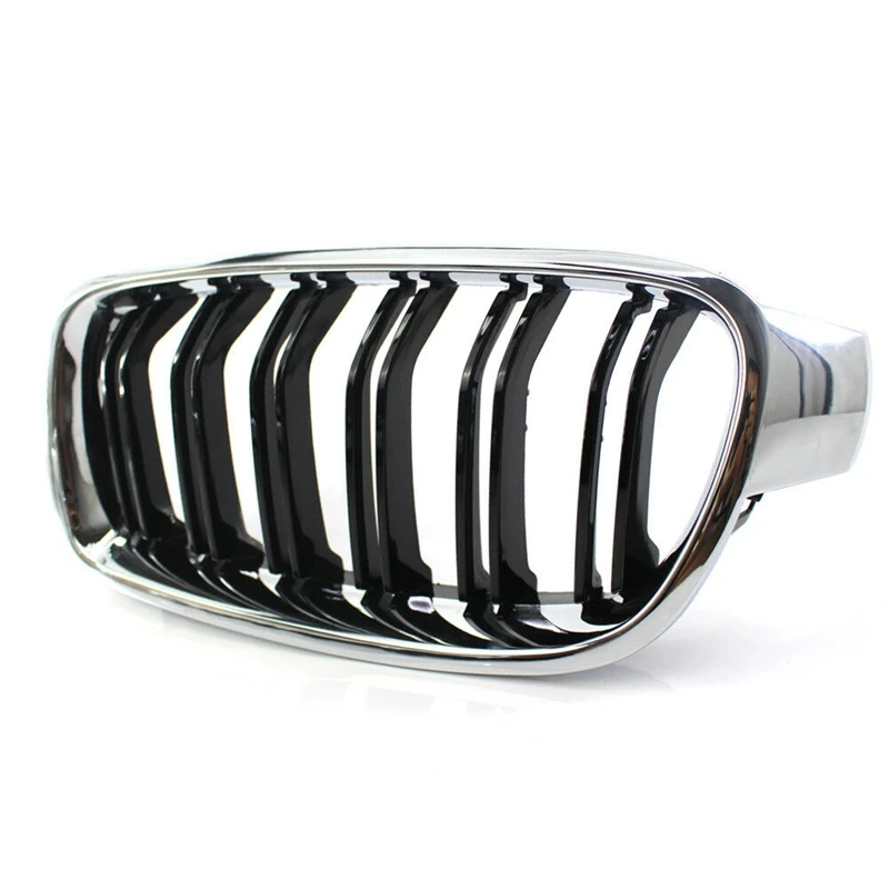Автомобильная почечная глянцевая черная двойная планка наполовину хромированная решетка для-BMW 3 серии F30 2012 - 2018