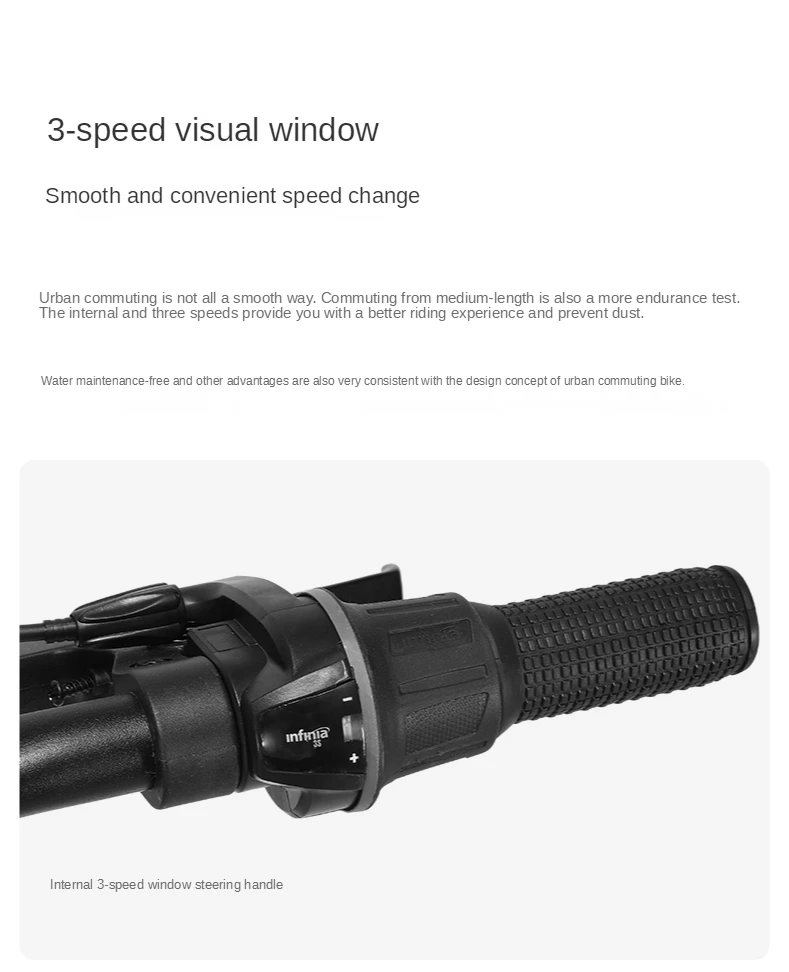 1. Стебель: одно слово ручка 2. Циферблат: внутренний 3 скорости 3. Задний циферблат: внутренний 3 скорости 4. Нижняя ось: герметичная и водонепроницаемая 5. Обод: 30 мм Режущее Кольцо из алюминиевого сплава 6. Рама: рама из алюминиевого сплава 7. Вес нетто: около 12 кг 8. Подходящий рост: 170-195 см