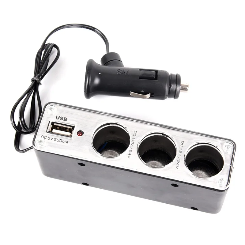 3-в-1 розетка для автомобильного прикуривателя с USB-портом