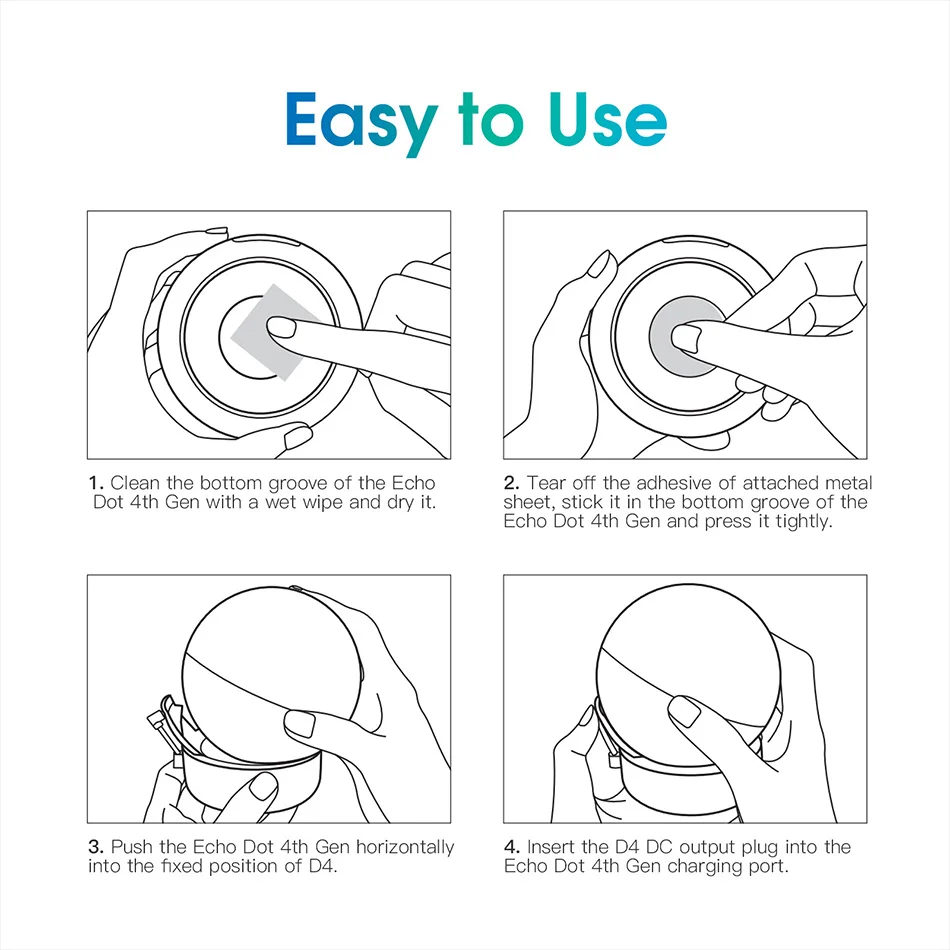 Устройство D4 с сильной совместимостью, подходит для всех видов моделей echo dot 4-го поколения, даже Новая версия с функцией часов, обратите внимание, что эта модель не подходит для echo 4, только для echo dot 4, если вам нужна батарея echo 4, перейдите по другой ссылке или свяжитесь с продавцом