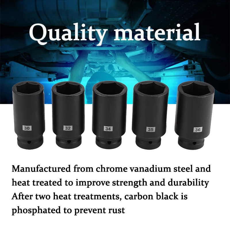 5 шт Набор отверток гайка колеса с шестигранной гнездо набор, включает в себя 30 мм, 32 мм, 34 мм, 35 мм, 36 мм.