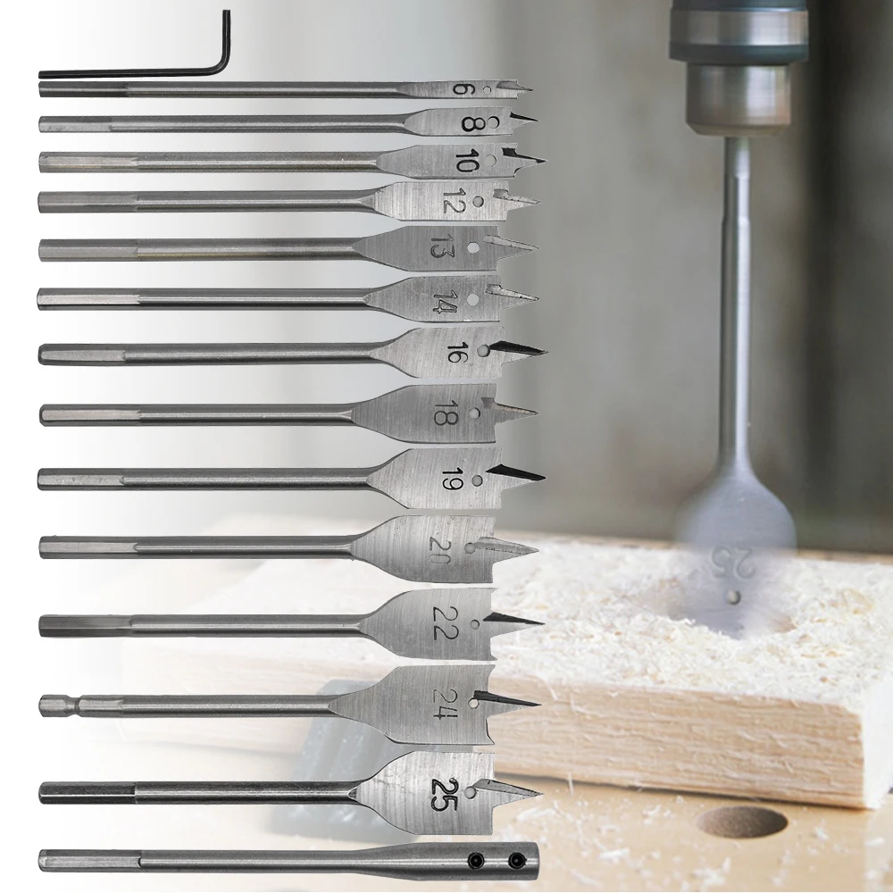 Плоские деревянные сверла диаметром: 6 мм/8 мм/10 мм/12 мм/13 мм/14 мм/16 мм/18 мм/19 мм/20 мм/22 мм/24 мм/25 мм