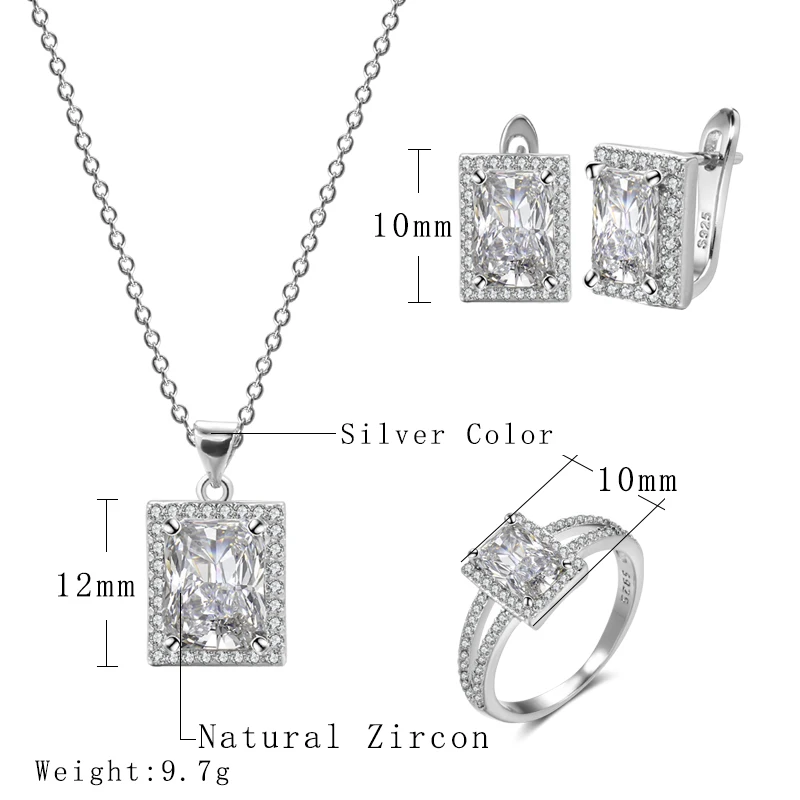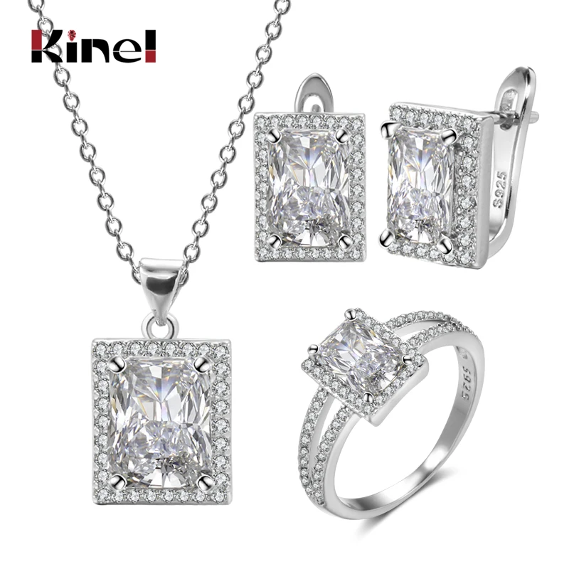 Kinel 925 серебро натуральный циркон Ювелирные наборы для женщин кольцо, ожерелье, серьги для невесты свадебные украшения подарок на день Святого Валентина