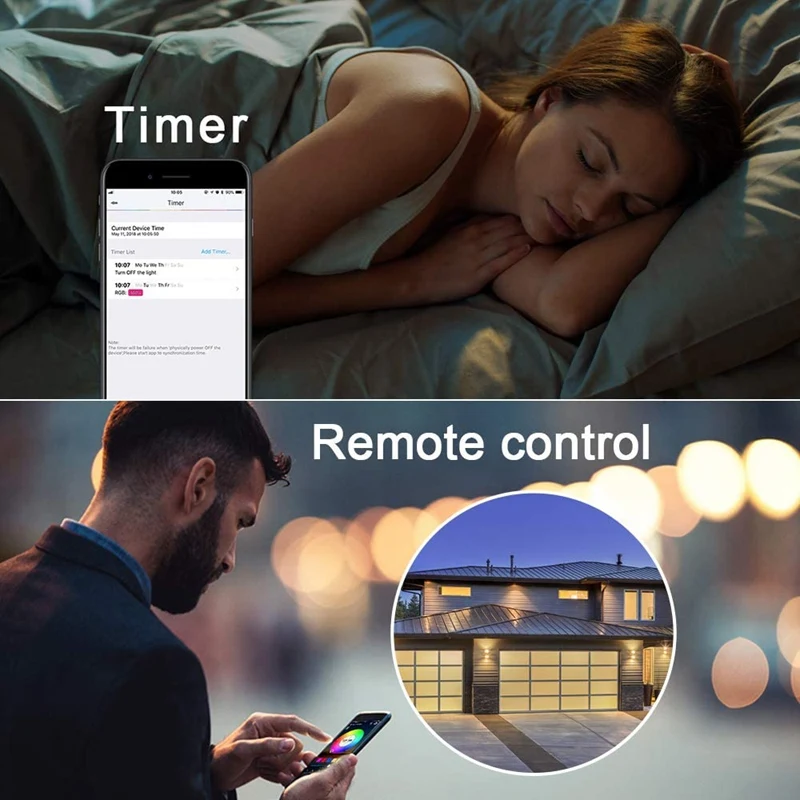 7 Таймер: Установите свет для включения/выключения в предустановленное время, чтобы вы могли вернуться домой в яркий хорошо освещенный дом.